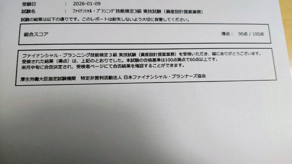 先日リゾートバイトから帰ってきて風邪を引いたりしていてバタバタしていたんですが、FP3級に合格することができました。