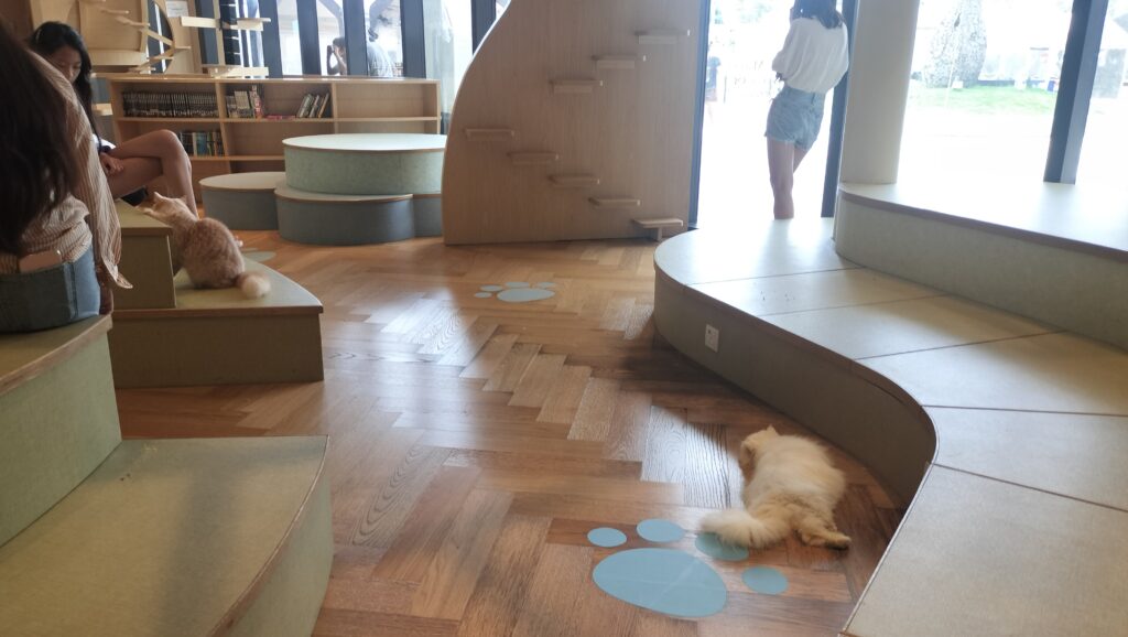 あと、入り口はドアになっているんですが、結構脱走している猫がいて面白かったです。