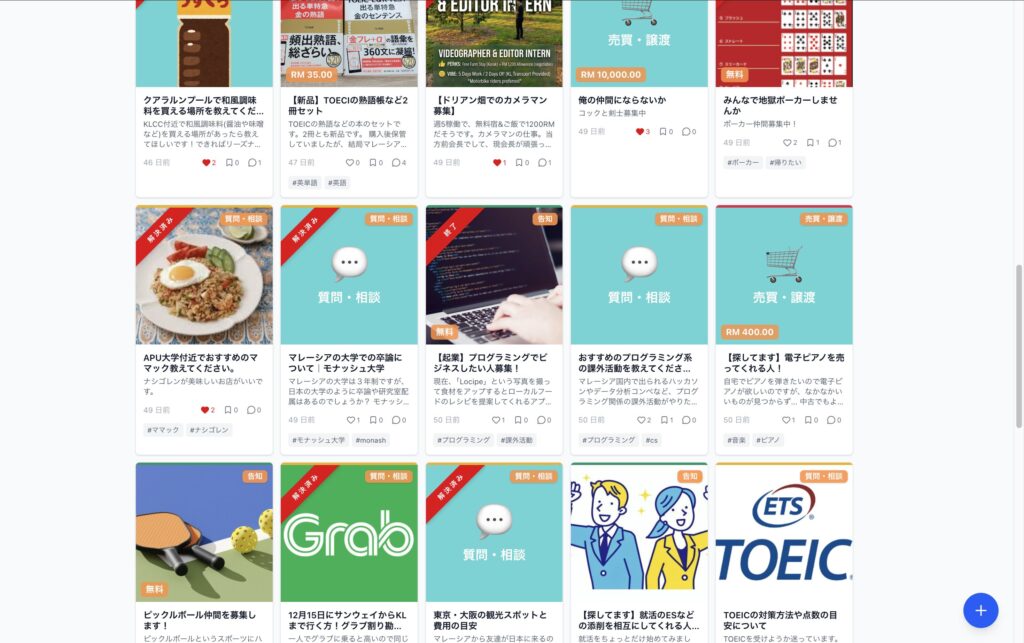 「マレーシア生活には慣れたし必要ないな〜」という人も、仲間募集をしたり就活・インターン情報(今後増えます)をゲットしたりできるので、ぜひ使ってみてください。