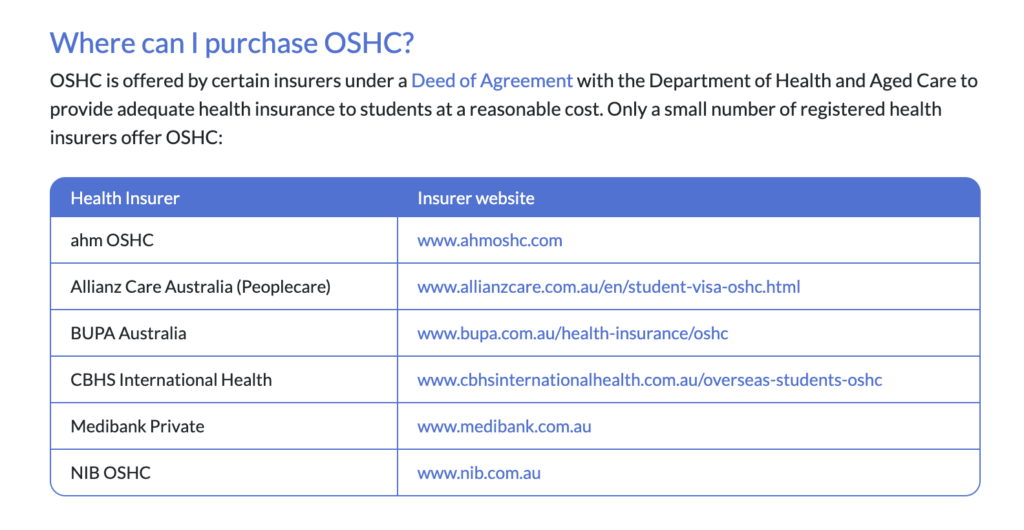- Overseas Visitors Health Cover plan(OSHC)と呼ばれる保険を購入