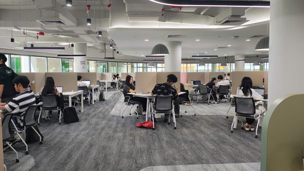 図書館はこんな感じ。Sunway大学と違ってWi-Fiも早いし座席数も十分確保されているしで、個人的には気に入っている勉強スペースです。