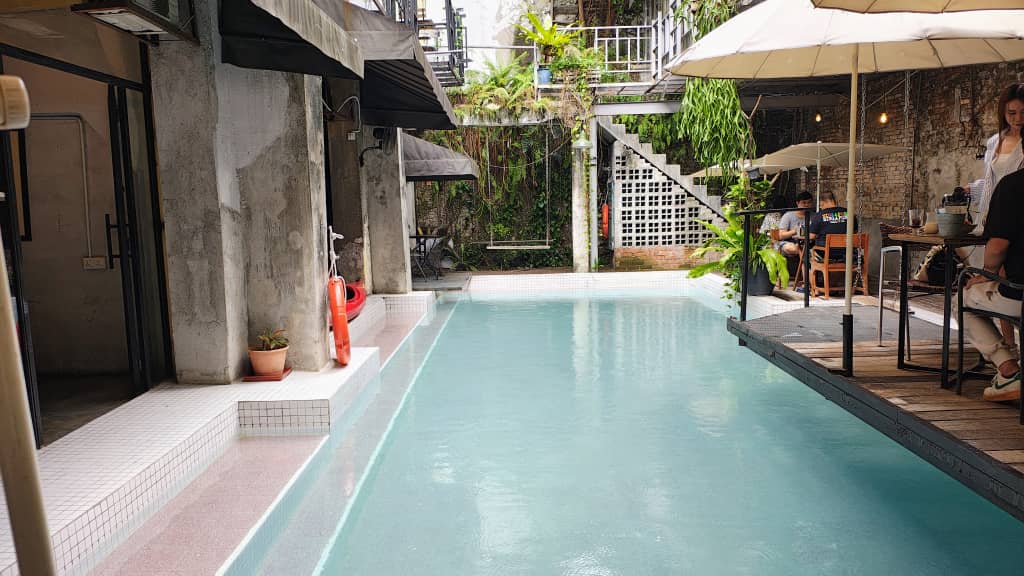 プールがあることが見どころで、アンティークな感じと青のコントラストが綺麗です。ご飯などもあって、RM30前後で食べられます。プールは一応泳げるそうです(恥ずかしそうだけど笑)。