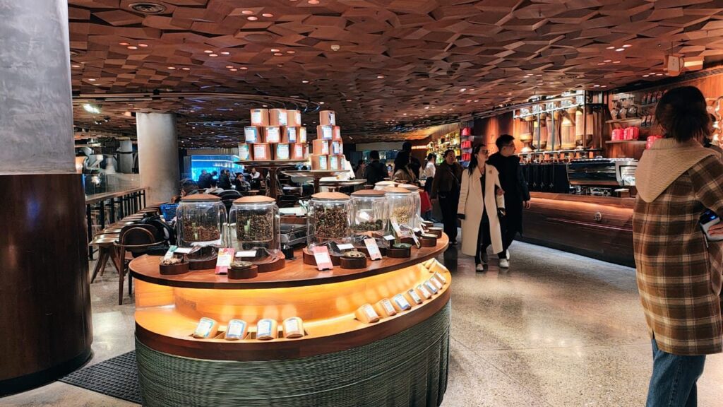 次に向かったのが有名なスターバックス リザーブ ロースタリー上海。世界に数店舗しかない巨大ロースタリーの1つで、観光地としても人気。