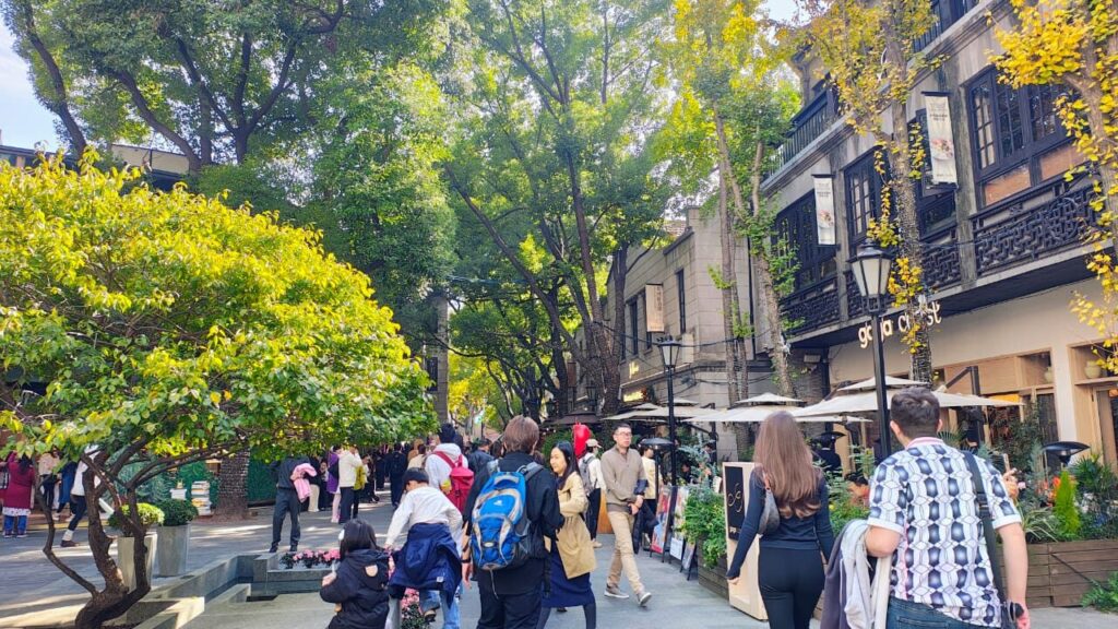 まず向かったのは新天地(シンティエンディ)。ヨーロッパ風のおしゃれな建物が並んでいて、カフェやショップ、レストランがぎっしり入っているエリアです。