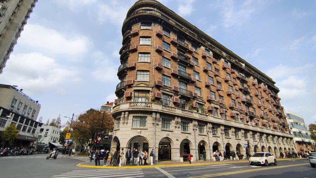 まずは有名な武康大楼へ。上海の写真スポットとしてもよく見る建物で、形が独特で確かに写真映えします。