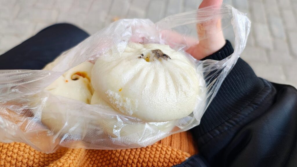 上海市内からの行き方はタクシー派も多いんですが、今回は鉄道で向かいました。料金はまさかの8〜9元(約170円程度)で、市内中心部から約1時間半。コスパ最強。朝ごはんは餃子。